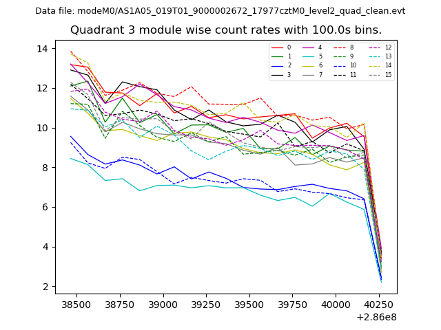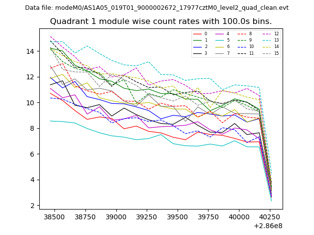 Module-wise count rates for Quadrant A