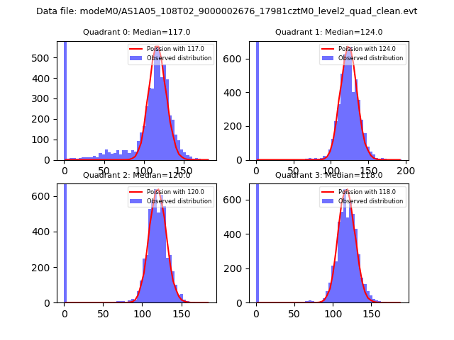 Red curve is a Poisson curve with rate = median count rate of data. |