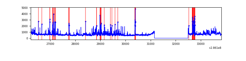 Red curve is a Poisson curve with rate = median count rate of data. |