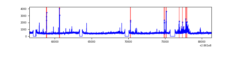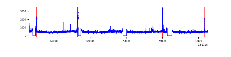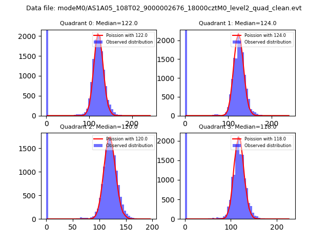 Red curve is a Poisson curve with rate = median count rate of data. |