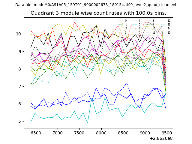 Module-wise count rates for Quadrant A