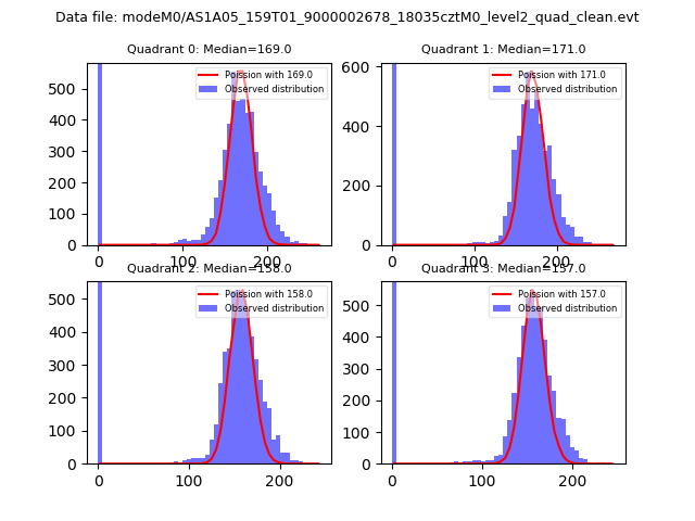 Red curve is a Poisson curve with rate = median count rate of data. |