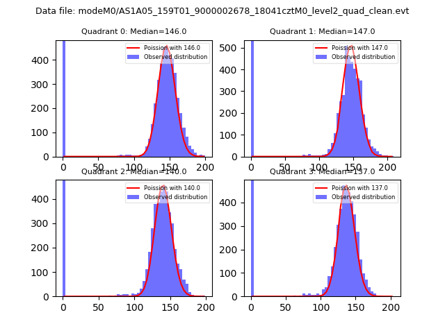 Red curve is a Poisson curve with rate = median count rate of data. |