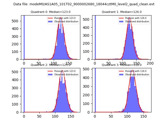 Red curve is a Poisson curve with rate = median count rate of data. |