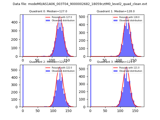 Red curve is a Poisson curve with rate = median count rate of data. |