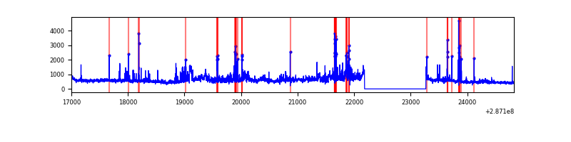 Red curve is a Poisson curve with rate = median count rate of data. |