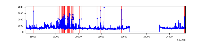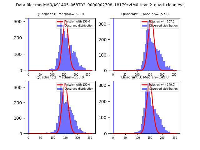 Red curve is a Poisson curve with rate = median count rate of data. |