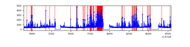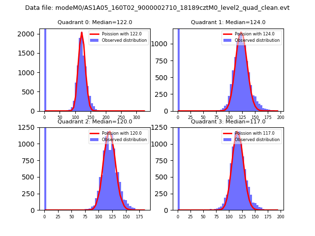 Red curve is a Poisson curve with rate = median count rate of data. |
