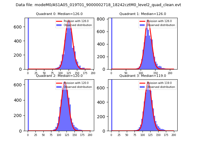 Red curve is a Poisson curve with rate = median count rate of data. |