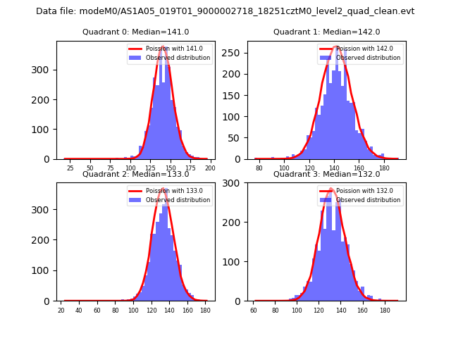 Red curve is a Poisson curve with rate = median count rate of data. |