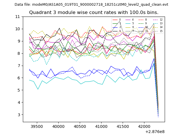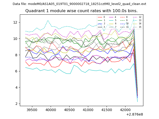 Module-wise count rates for Quadrant A