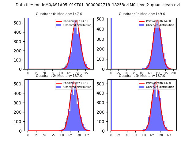 Red curve is a Poisson curve with rate = median count rate of data. |