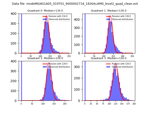 Red curve is a Poisson curve with rate = median count rate of data. |
