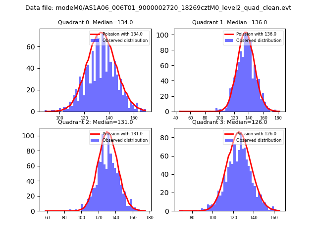 Red curve is a Poisson curve with rate = median count rate of data. |