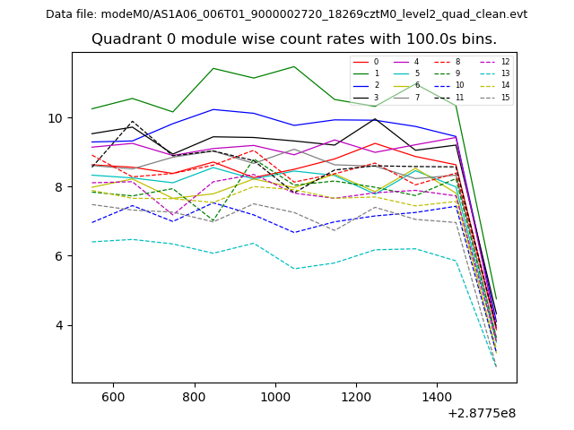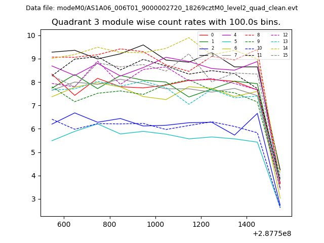 Module-wise count rates for Quadrant A
