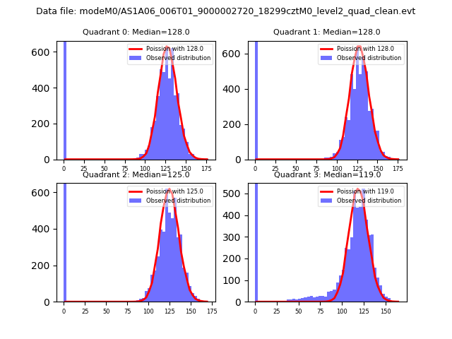 Red curve is a Poisson curve with rate = median count rate of data. |