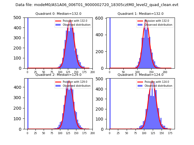 Red curve is a Poisson curve with rate = median count rate of data. |
