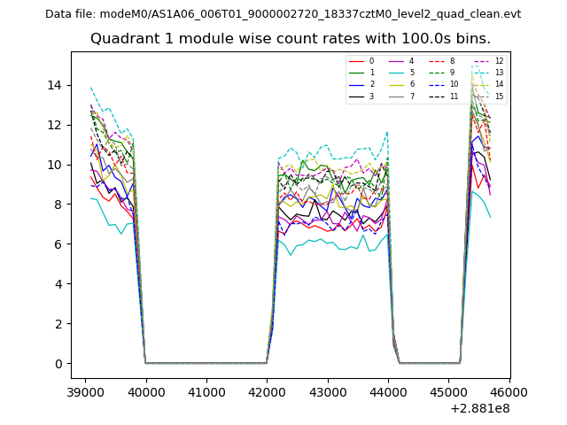 Module-wise count rates for Quadrant A