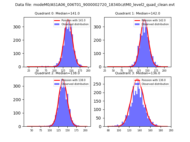 Red curve is a Poisson curve with rate = median count rate of data. |