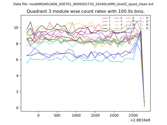 Module-wise count rates for Quadrant A