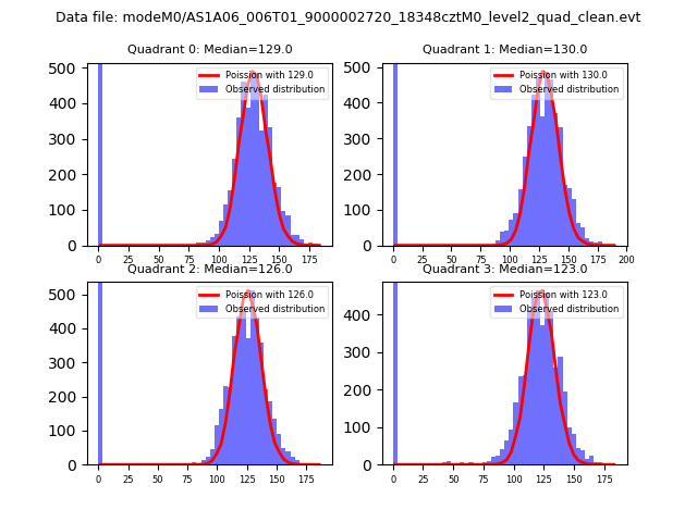 Red curve is a Poisson curve with rate = median count rate of data. |