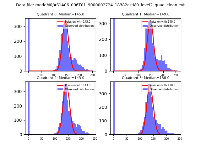 Red curve is a Poisson curve with rate = median count rate of data. |