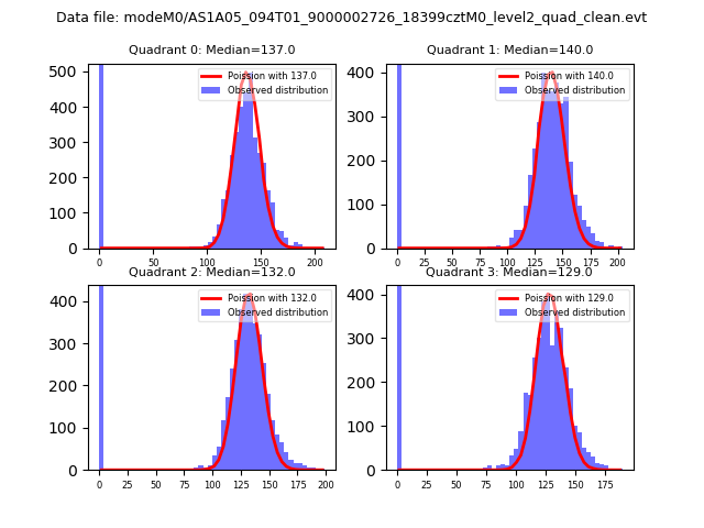 Red curve is a Poisson curve with rate = median count rate of data. |