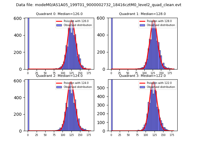 Red curve is a Poisson curve with rate = median count rate of data. |