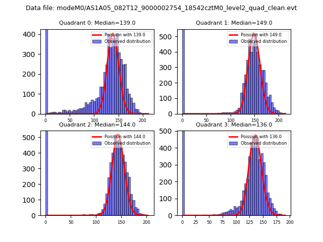 Red curve is a Poisson curve with rate = median count rate of data. |