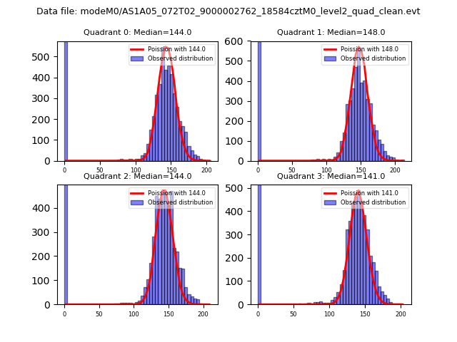 Red curve is a Poisson curve with rate = median count rate of data. |