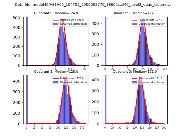 Red curve is a Poisson curve with rate = median count rate of data. |
