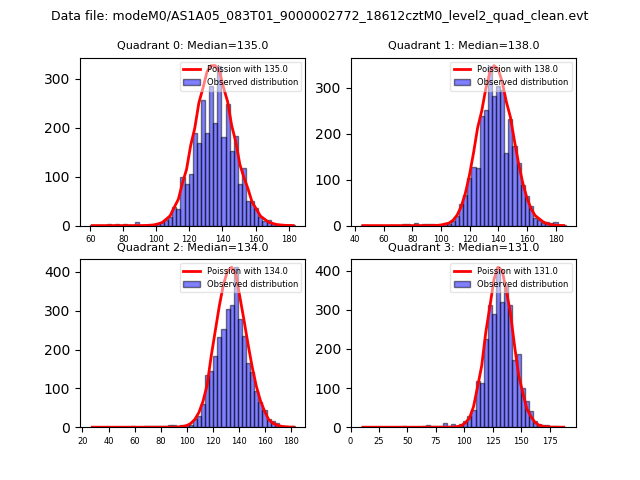 Red curve is a Poisson curve with rate = median count rate of data. |