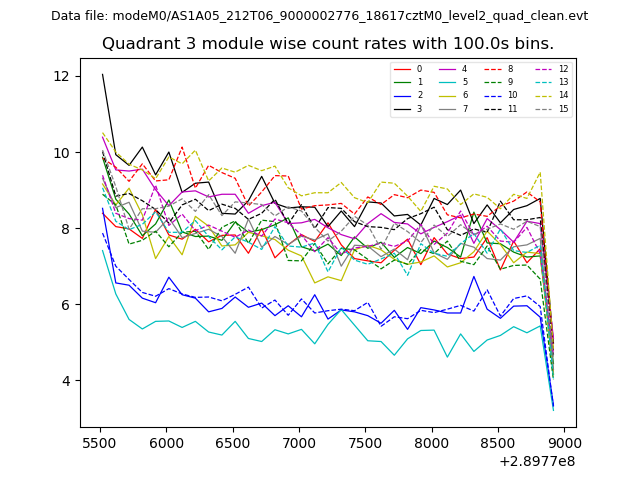 Module-wise count rates for Quadrant A
