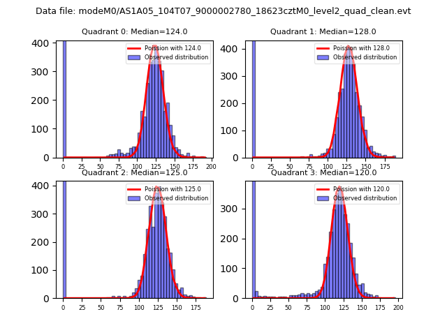 Red curve is a Poisson curve with rate = median count rate of data. |