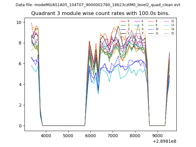 Module-wise count rates for Quadrant A
