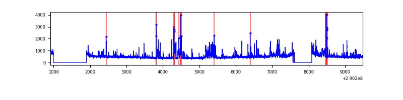 Red curve is a Poisson curve with rate = median count rate of data. |