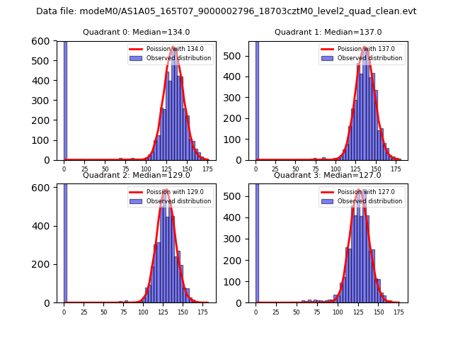 Red curve is a Poisson curve with rate = median count rate of data. |