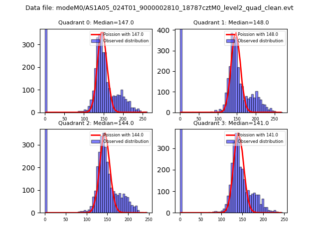 Red curve is a Poisson curve with rate = median count rate of data. |