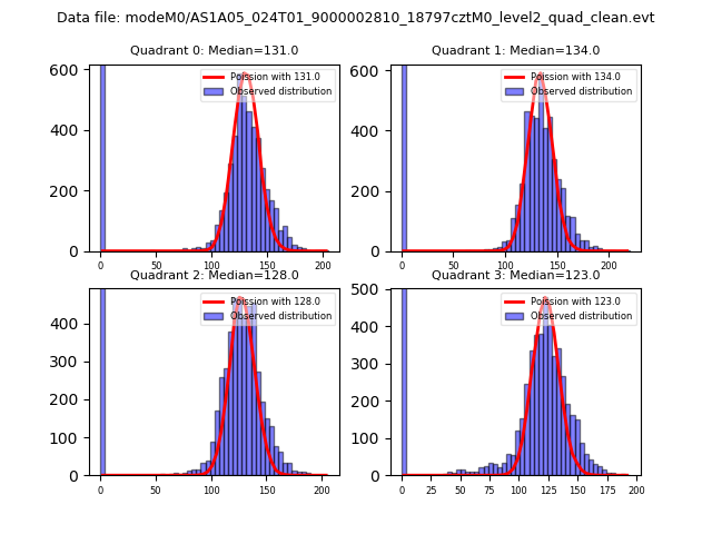 Red curve is a Poisson curve with rate = median count rate of data. |