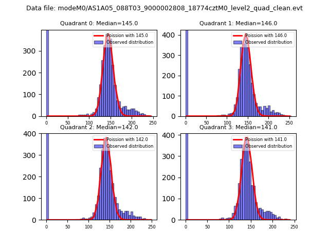 Red curve is a Poisson curve with rate = median count rate of data. |