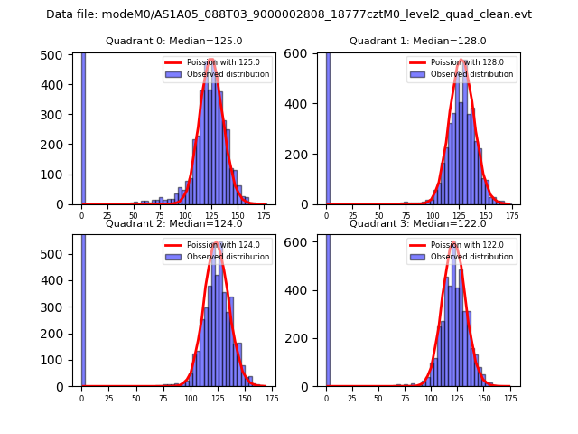Red curve is a Poisson curve with rate = median count rate of data. |
