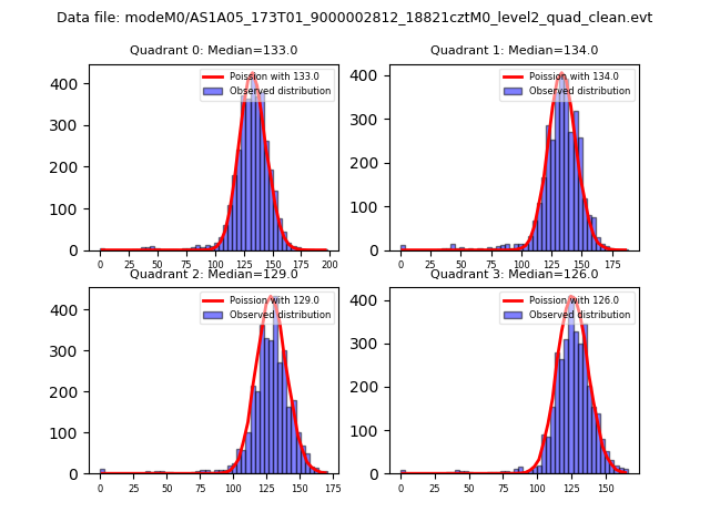 Red curve is a Poisson curve with rate = median count rate of data. |