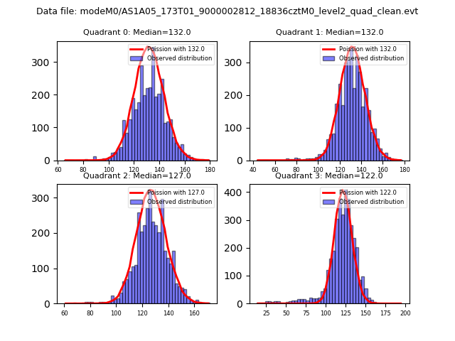 Red curve is a Poisson curve with rate = median count rate of data. |