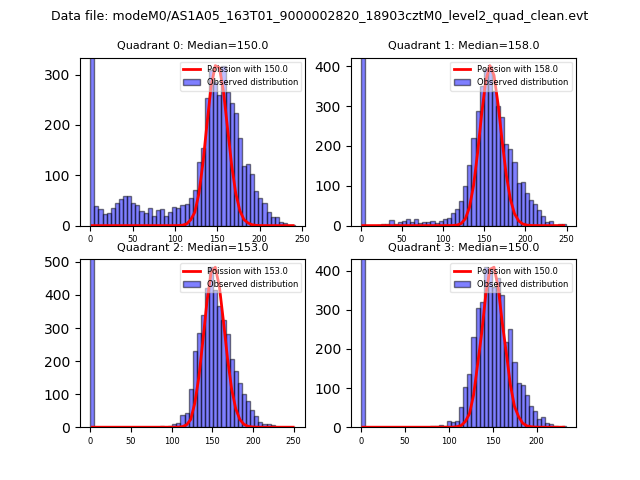 Red curve is a Poisson curve with rate = median count rate of data. |