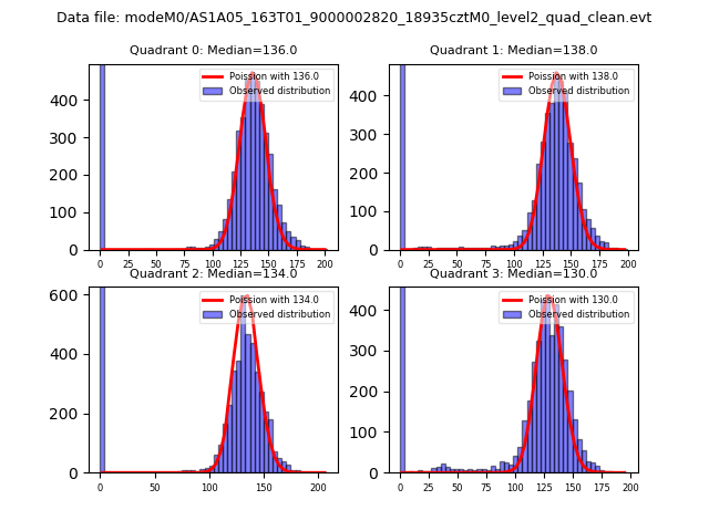 Red curve is a Poisson curve with rate = median count rate of data. |