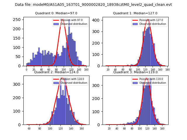 Red curve is a Poisson curve with rate = median count rate of data. |