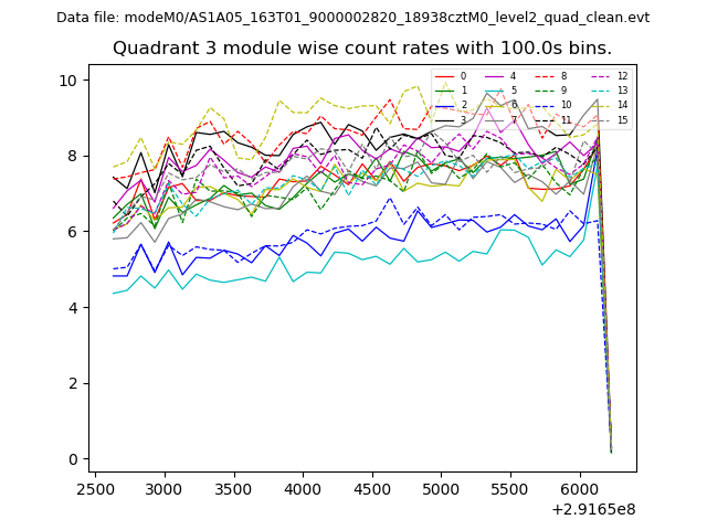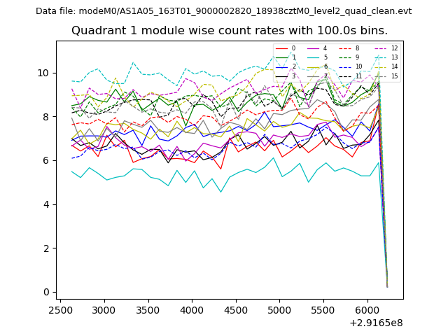 Module-wise count rates for Quadrant A
