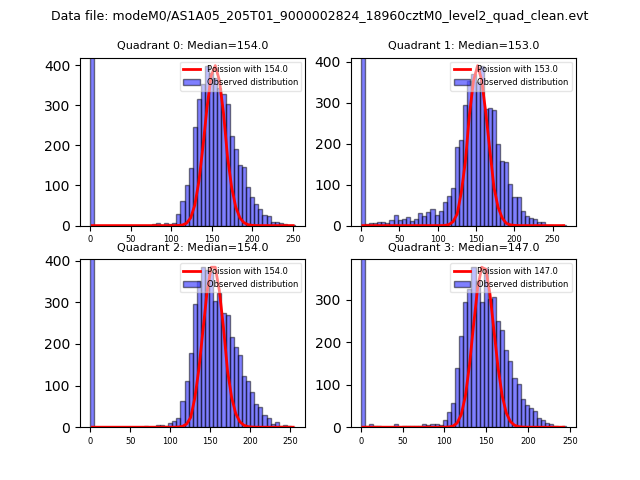 Red curve is a Poisson curve with rate = median count rate of data. |
