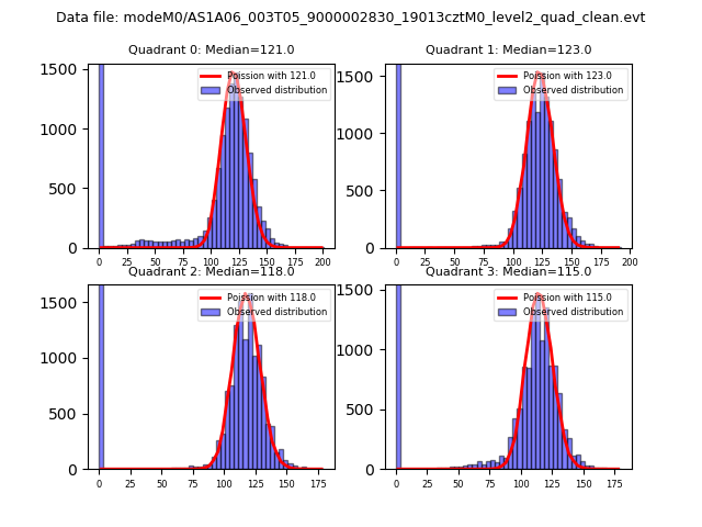Red curve is a Poisson curve with rate = median count rate of data. |