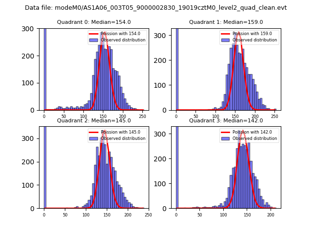 Red curve is a Poisson curve with rate = median count rate of data. |